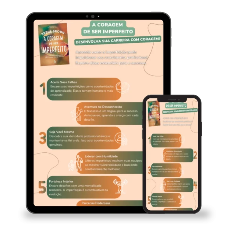 INFOGRÁFICO A CORAGEM DE SER IMPERFEITO DESENVOLVA SUA CARREIRA COM CORAGEM! Aprenda como a imperfeição pode impulsionar seu crescimento profissional Explore dicas essenciais para o
